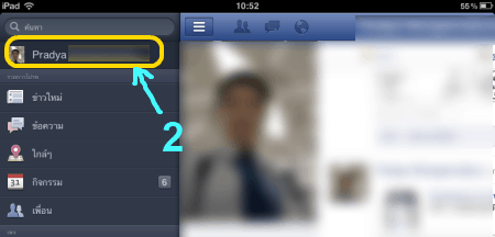 ขั้นตอนแรกเปิดแอพ Facebook บนสมาร์ทโฟนระบบปฏิบัติการ iOS อย่าง iPhone iPod Touch และ iPad (ในตัวอย่างนี้จะเป็นการสาธิตผ่าน Facebook บน iPad)